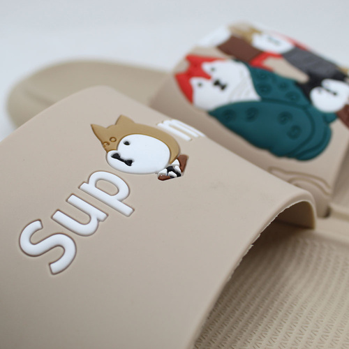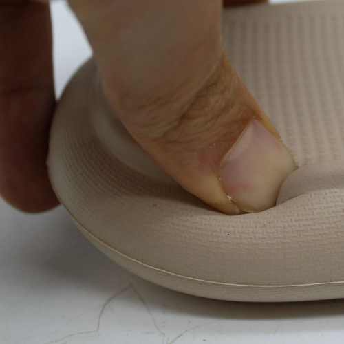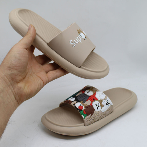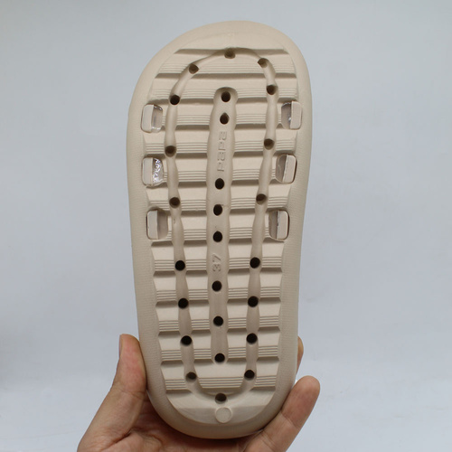 زیره این دمپایی از جنس EVA و به ضخامت حدودی 3 سانتیمتر است. محصولات تولید شده از متریال EVA بسیار نرم و سبک میباشند. رویه این دمپایی از PVC نرم و منعطف طرح برجسته است.